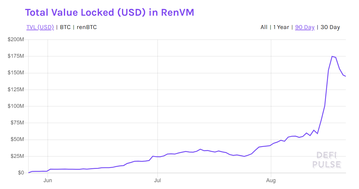 In less than 4 months, the total value of Bitcoin locked on Ethereum has grown over 20x between the WBTC and RenVM protocols!